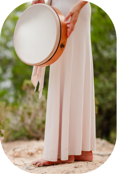 In the spaces that I hold, we work with the frame drum as a sacred instrument to accompany and support the healing vibration of our voices to come through.